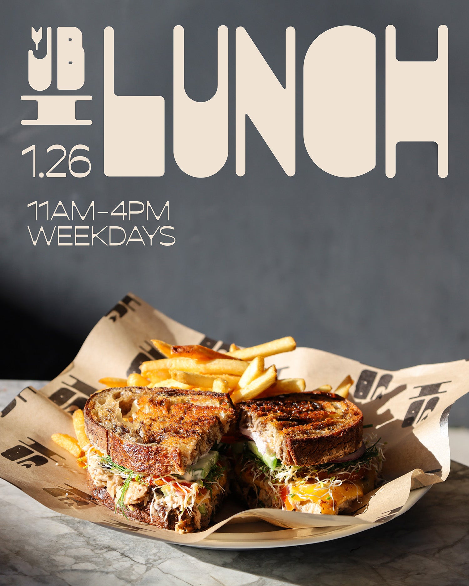 JIB LUNCH HAS LAUNCHED11AM-4PM WEEKDAYSCOME THROUGH