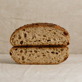 Our City Sourdough coated in a seed mixture of organic sesame, poppy, pepita, sunflower, and flax seeds. A classic sourdough with the added umami flavor of the toasted seed mix.